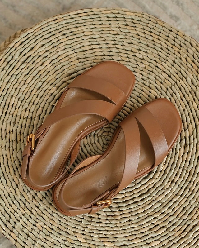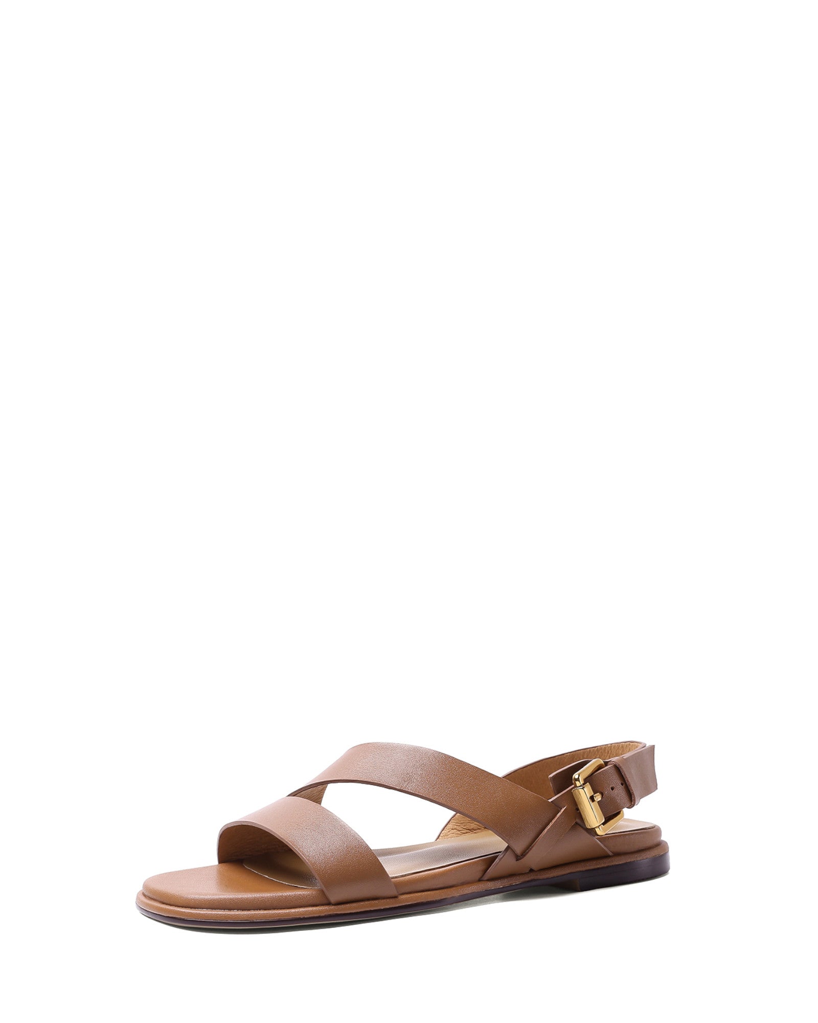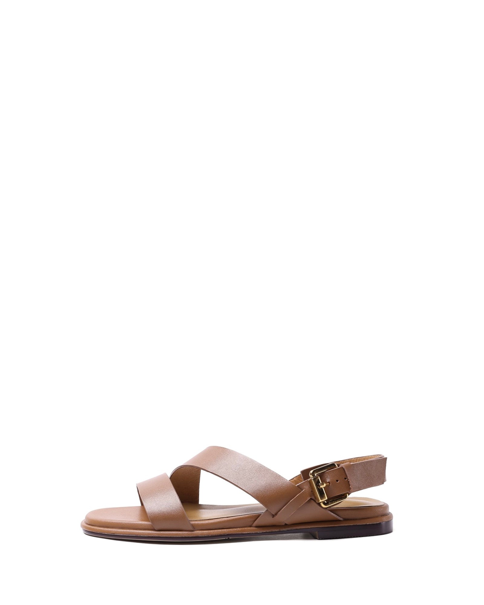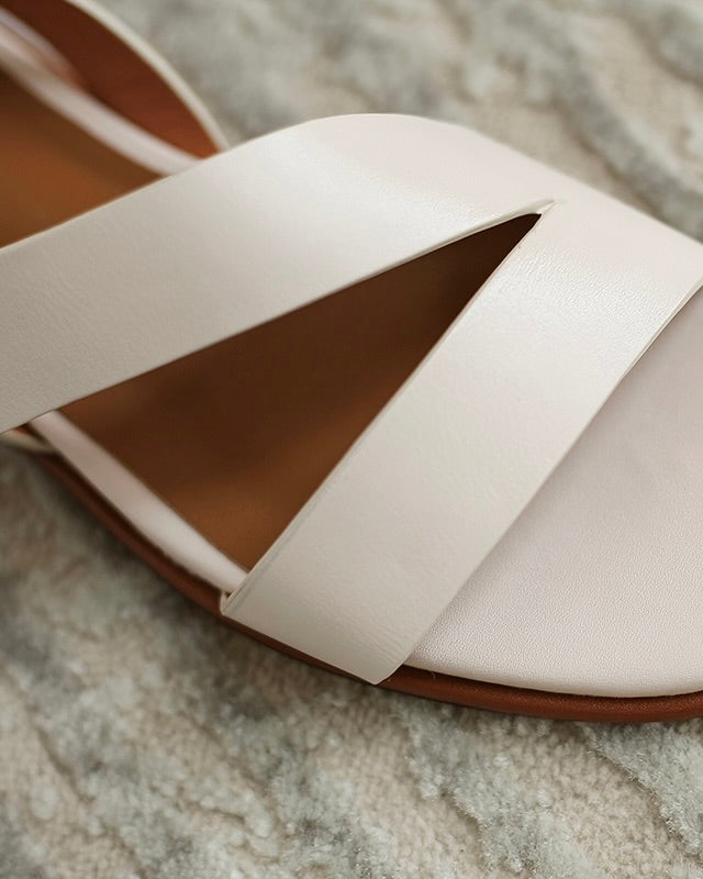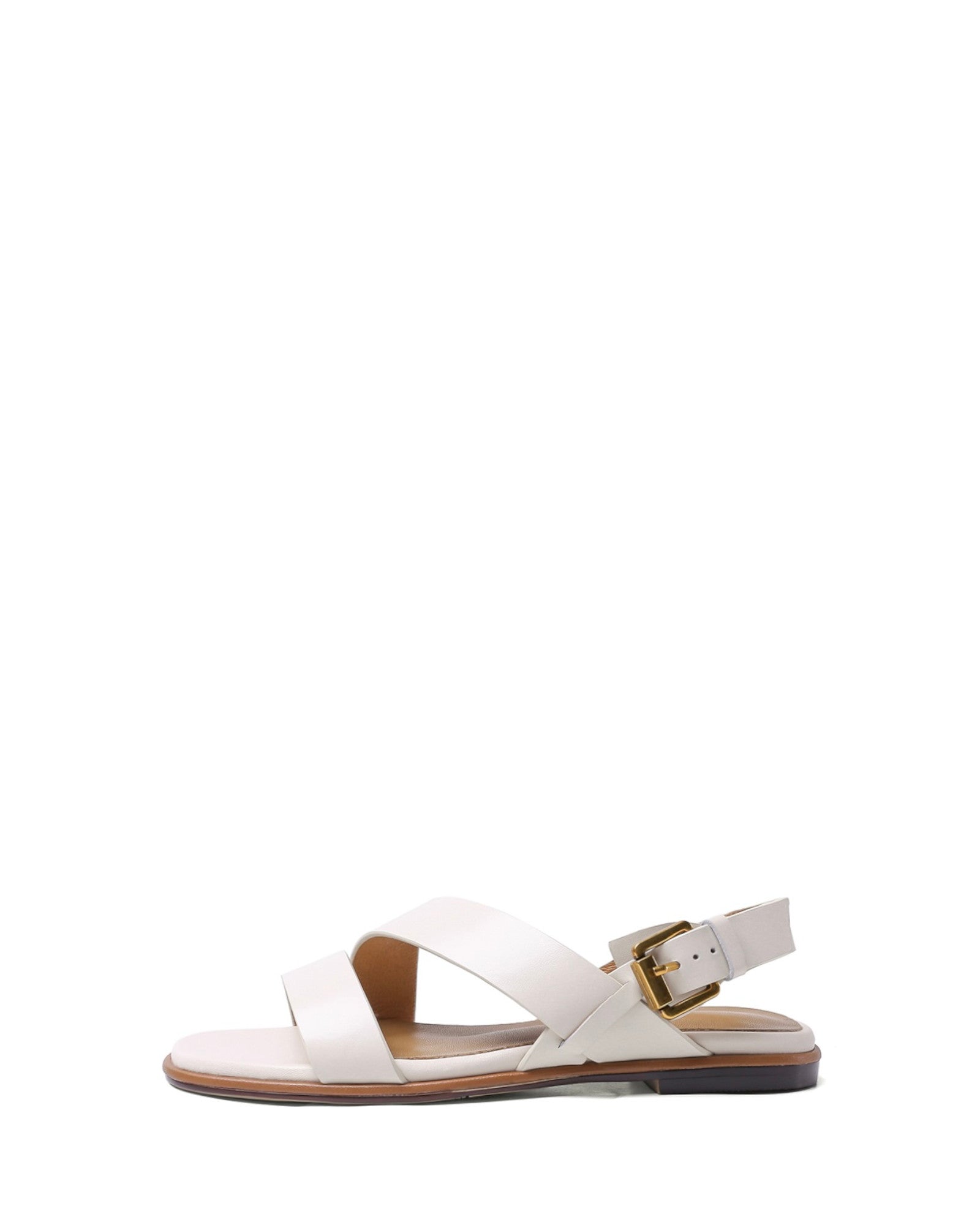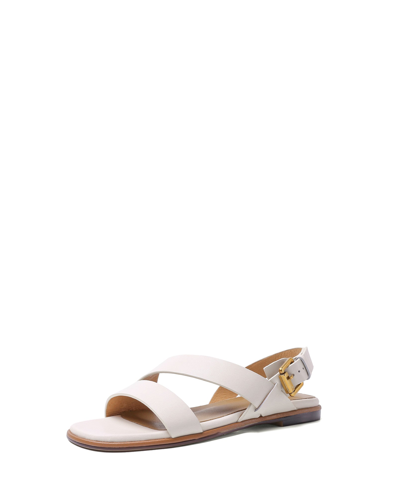 Estas sandalias planas abiertas con punta cuadrada cuentan con una correa de cuero asimétrica y un diseño destalonado para una apariencia única y elegante.