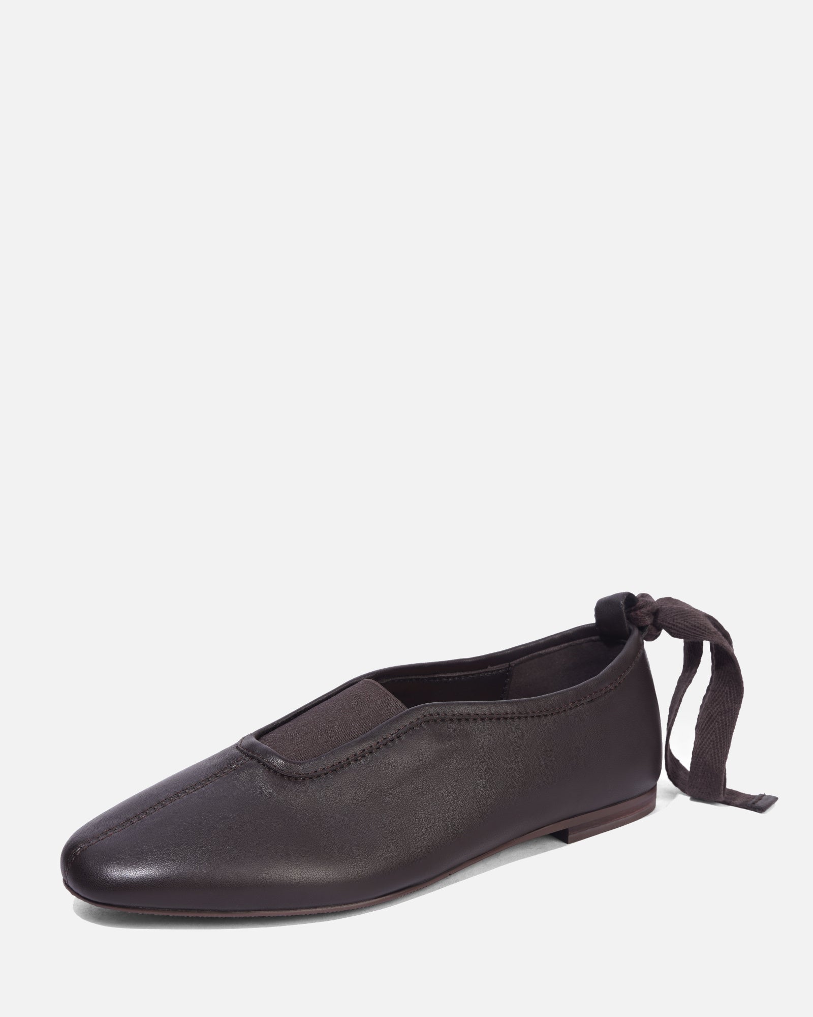 Lambskin flats feature an almond toe, elastic panel (across instep) and detachable back strap for fastening.