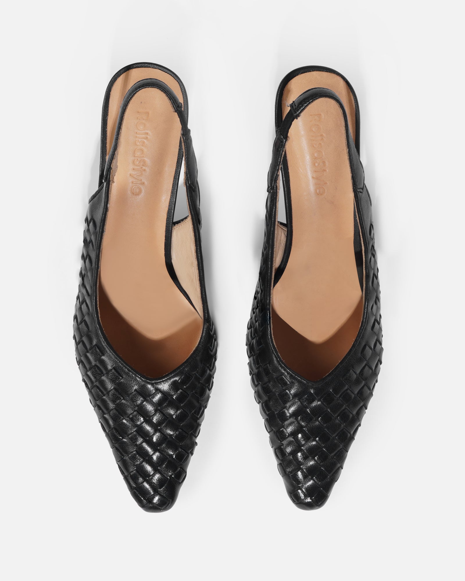 Una interpretación moderna de un clásico atemporal. Nuestro icónico tacón tejido MISORA se reinventa elegantemente en una silueta slingback. Expertamente elaborado con suave piel de cordero, este diseño presenta una punta afilada y un tacón delgado de 60 mm, logrando el equilibrio perfecto entre feminidad sofisticada y comodidad diaria.