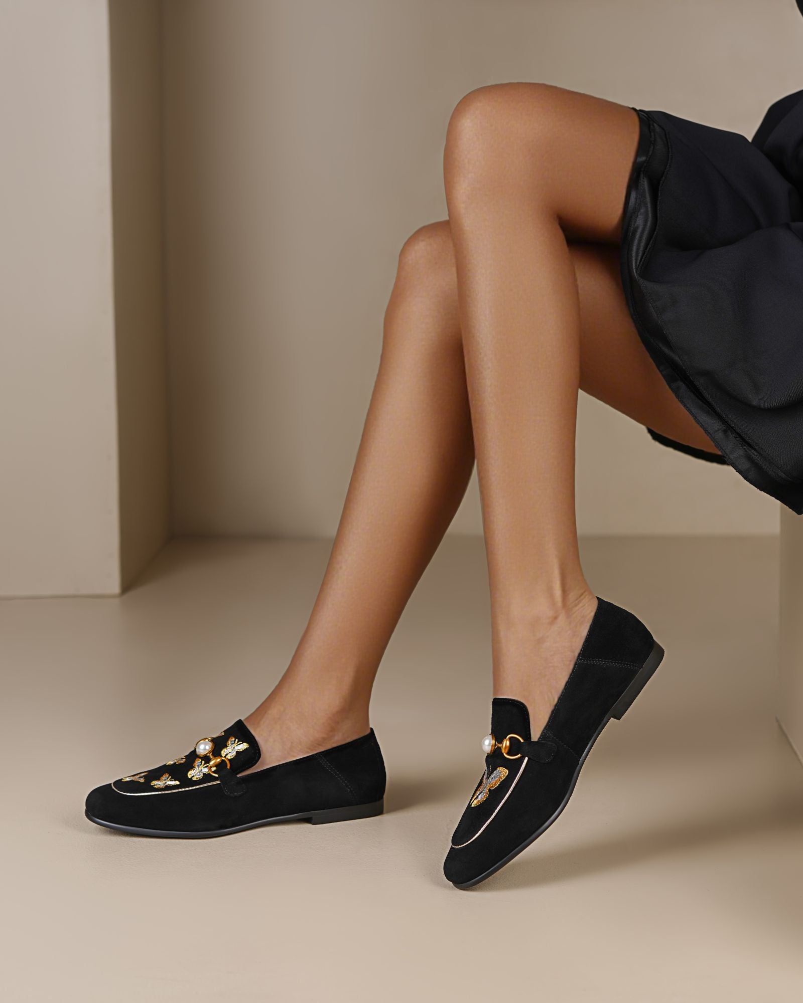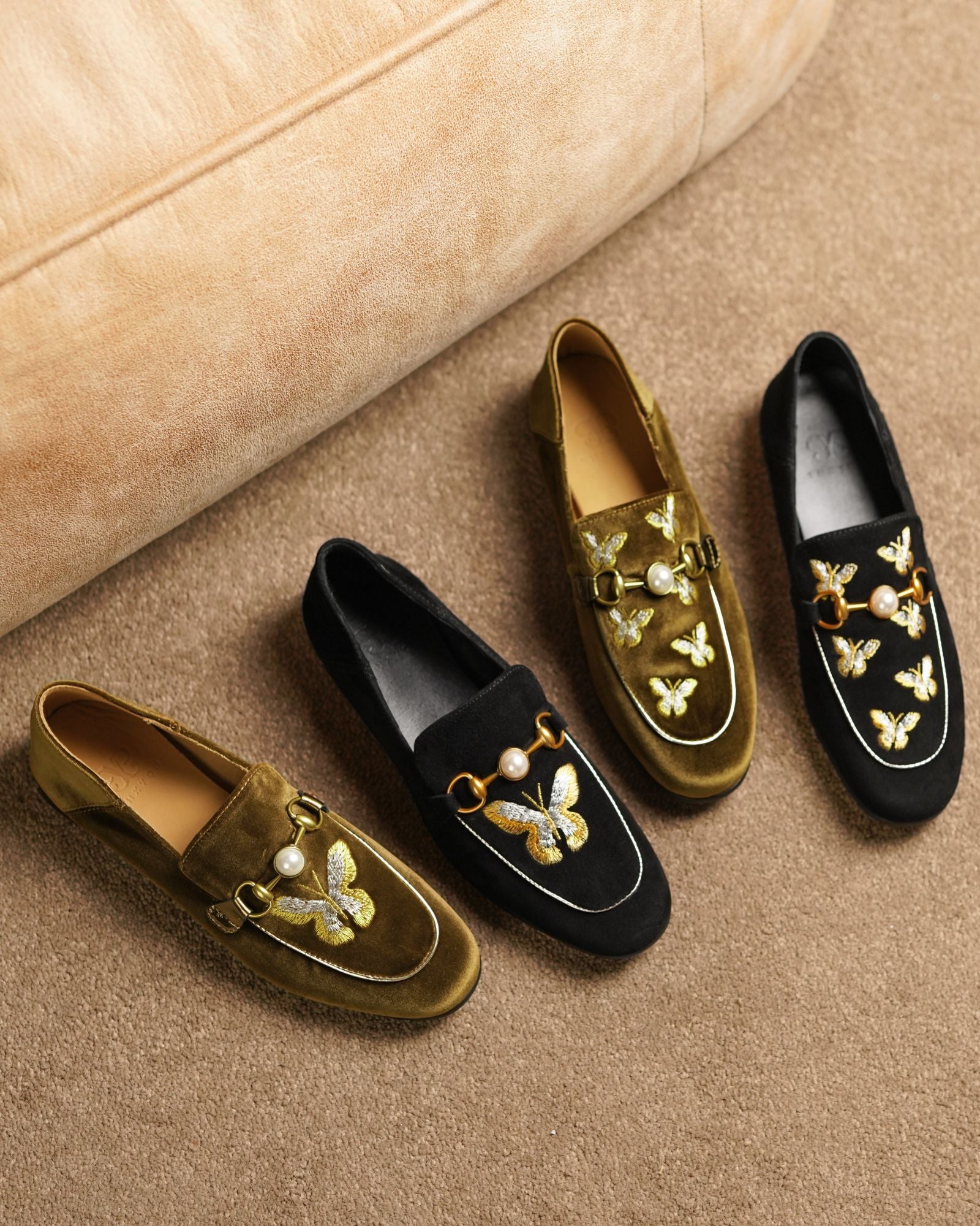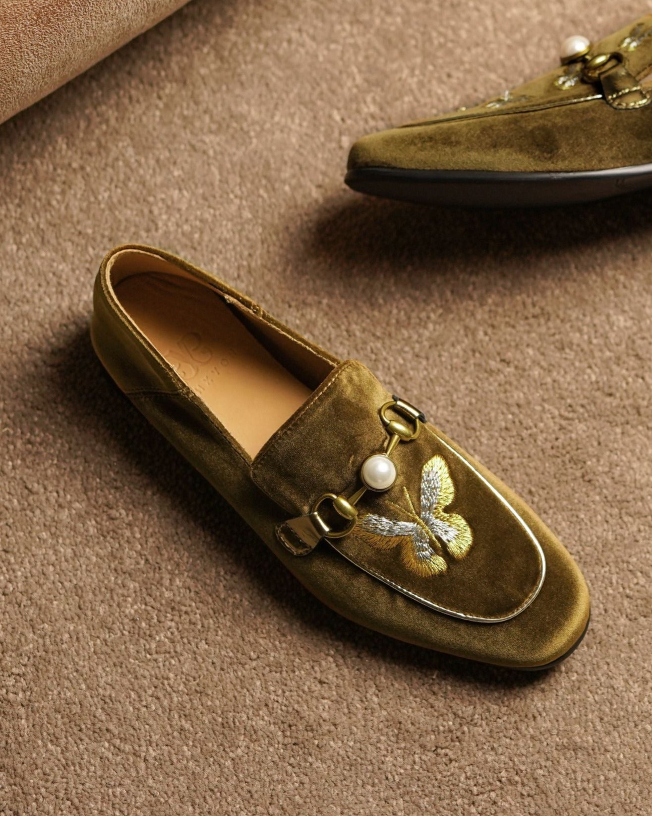 Transformez votre look quotidien en un look exceptionnel avec les mocassins brodés Coria. Chaque paire arbore un motif papillon brodé asymétrique sur la tige. Appréciez la sophistication raffinée que cette paire apportera à votre garde-robe, du bureau au dîner.