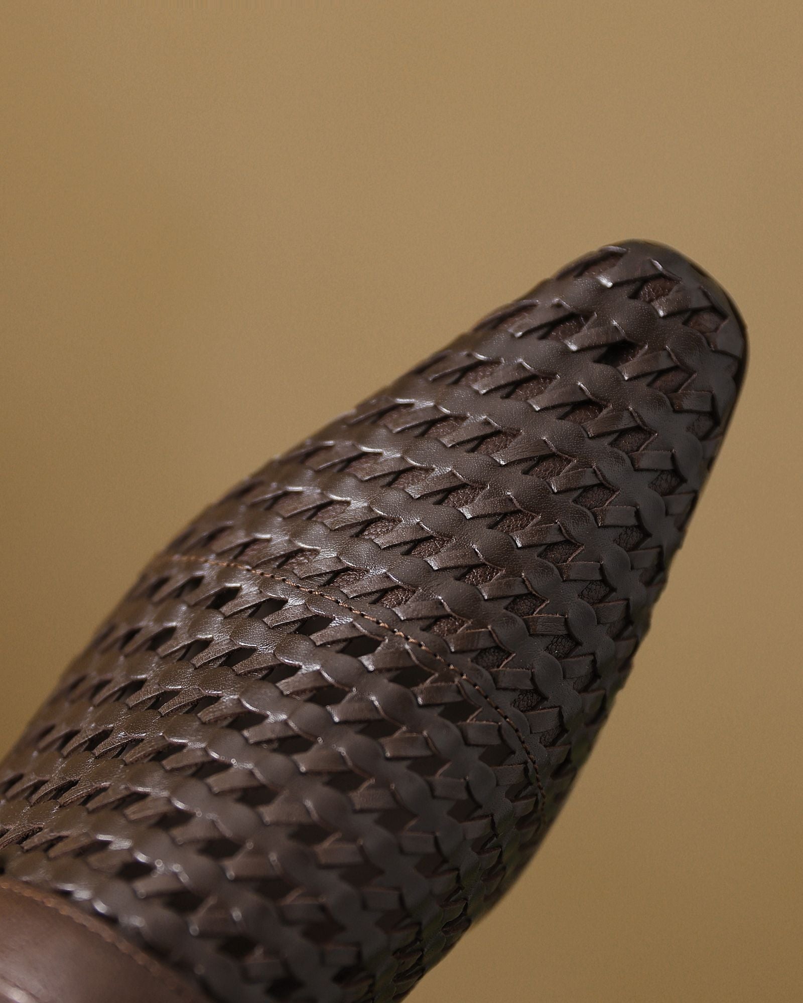 Featuring a sleek pointed toe and a handicraft woven upper, these mules bring a playful edge to any outfit.