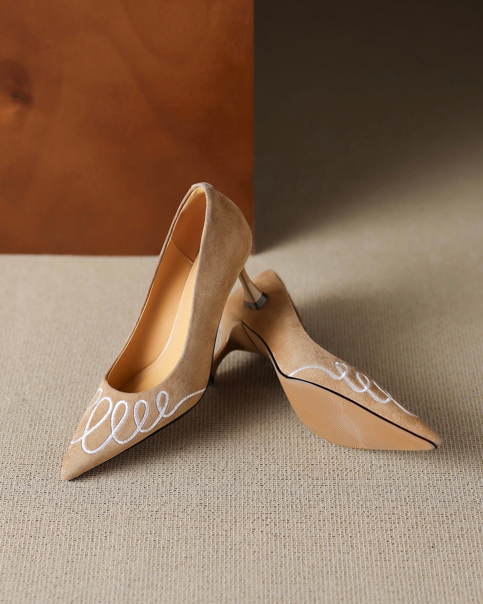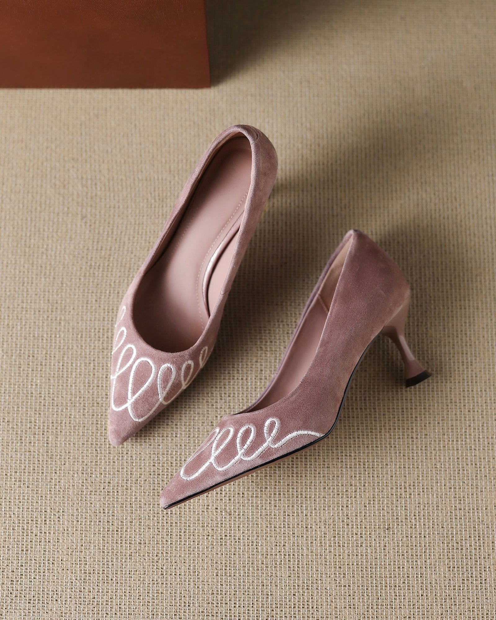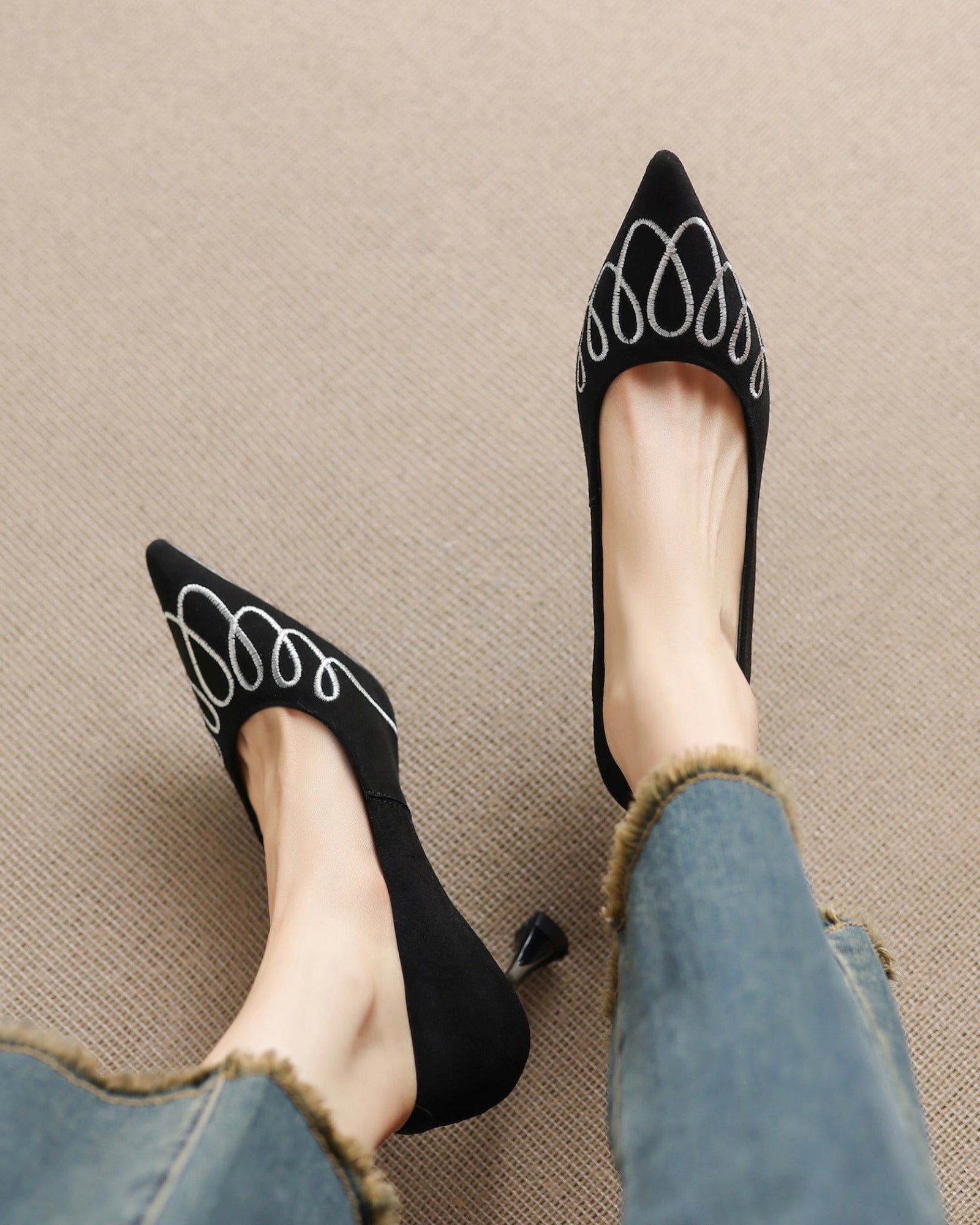 Step into elegance with the Laita Embroidery Suede Heels, where intricate embroidery meets timeless sophistication. Crafted from soft suede, these beauties feature a sharp pointed toe that elongates your silhouette and a perfectly pitched 65mm stiletto heel for that confidence-boosting lift.
